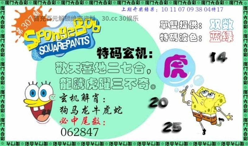 | 307期⑥码 | 35.45.26.19.20.41 | 狗20中 |